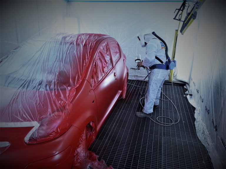 A zárt fényezőkabinban túlnyomás mellett történik szórás munkafázis. Ezt követően szikkasztási és végül a szárítási folyamat. A magas hőmérsékleten végzett szárítás által elérjük a magas fényű tartós védelmet.